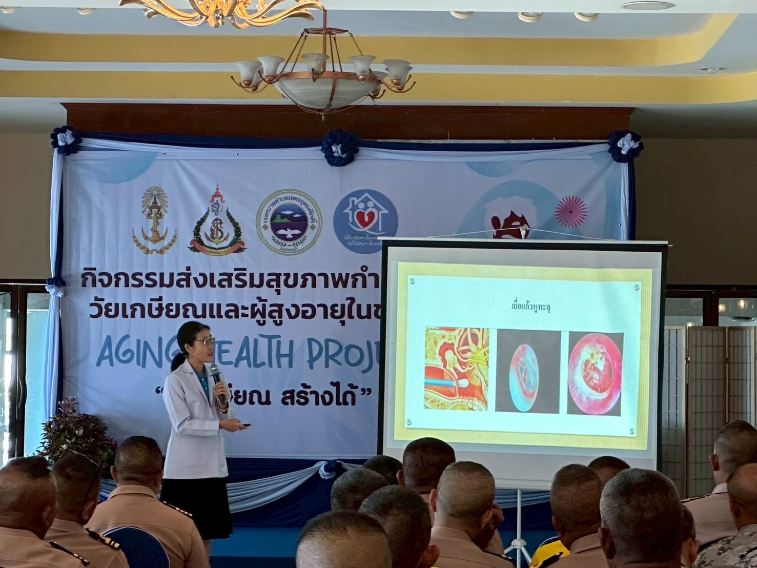 ภายในงานประกอบด้วยการบรรยายความรู้จากทีมแพทย์ผู้เชี่ยวชาญในด้านต่างๆ ได้แก่ ภาวะสมองเสื่อม การได้ยิน การมองเห็น การทรงตัว การเคลื่อนไหว และอุบัติเหตุในผู้สูงอายุ รวมทั้งมีกิจกรรมเพื่อคัดกรองอาการและความเสี่ยงที่อาจเกิดขึ้นได้จากการจัดกิจกรรมดังกล่าวทำให้กำลังพลและครอบครัวได้เข้าใจภาวะที่อาจเกิดขึ้นในวัยสูงอายุ ร่วมทั้งหาแนวทางในการป้องกันตนเอง และรักษาหากเกิดอาการ ถือเป็นผลดีของกำลังพลและครอบครัวการดูแลตนเองต่อไป